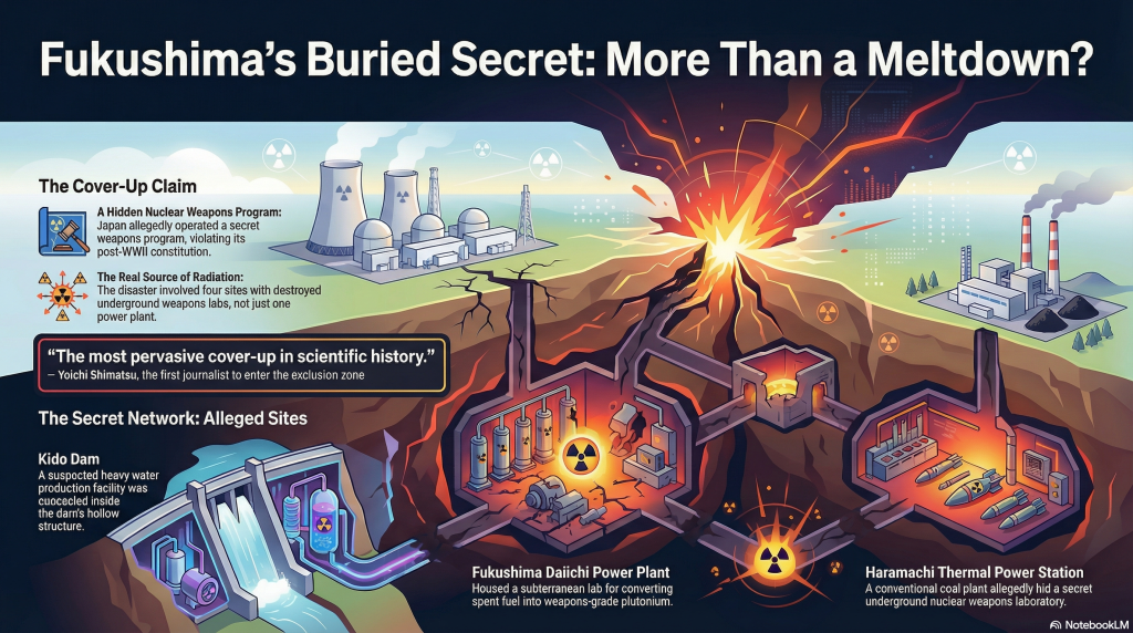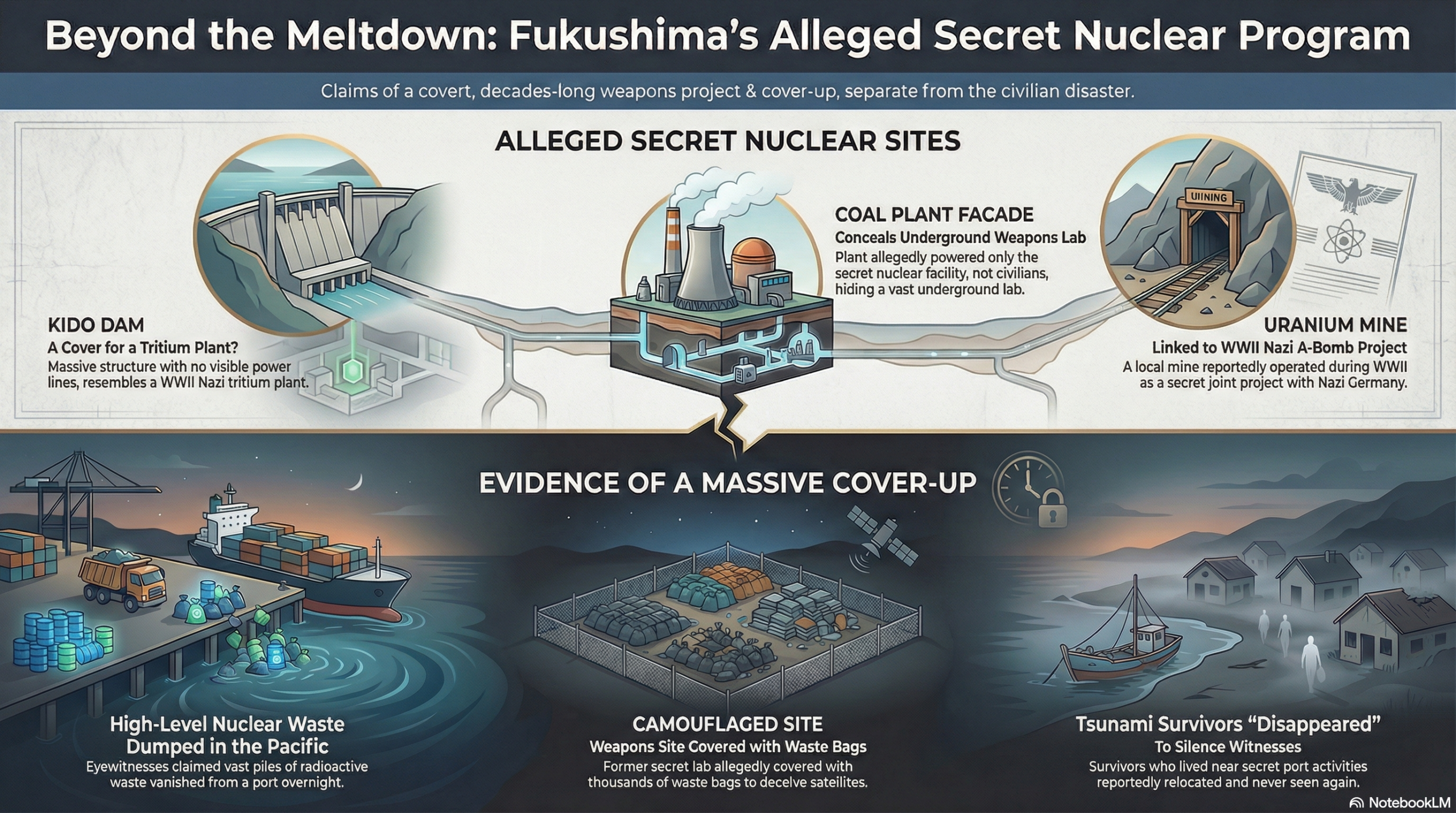 The only source URL being used here is Yoichi’s 25-minute Youtube video, Tracking Fukushima’s Nuclear Weapons Sites. The structure of the ‘Atomic Secrets’ website pages was always meant to reflect the Fukushima Youtube video. Therefore the above graphic is an alternate representation of the Youtube.