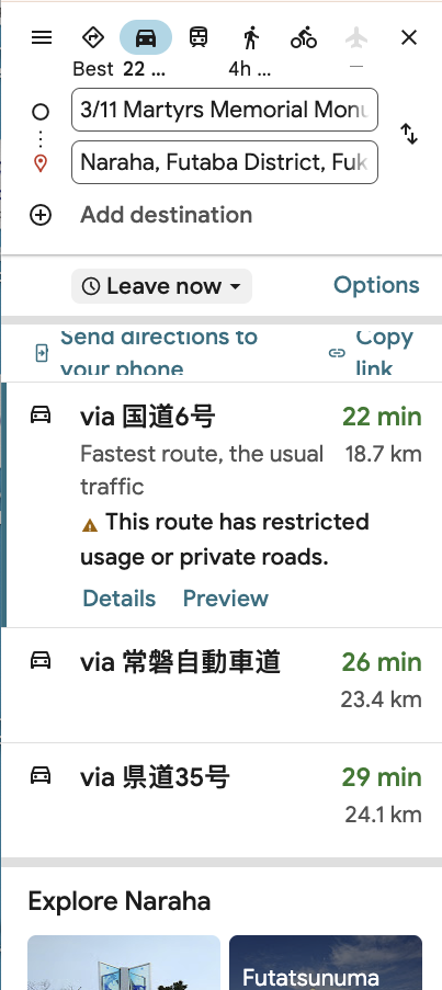 The Key Roads after the meltdown were the Coastal Highway and further inland Roadway/Highway 6 south-southwest of the Tepco plant. However, after the meltdown 24-hour police guard checkpoints banned entry by any vehicles other than Tepco service workers and government types.