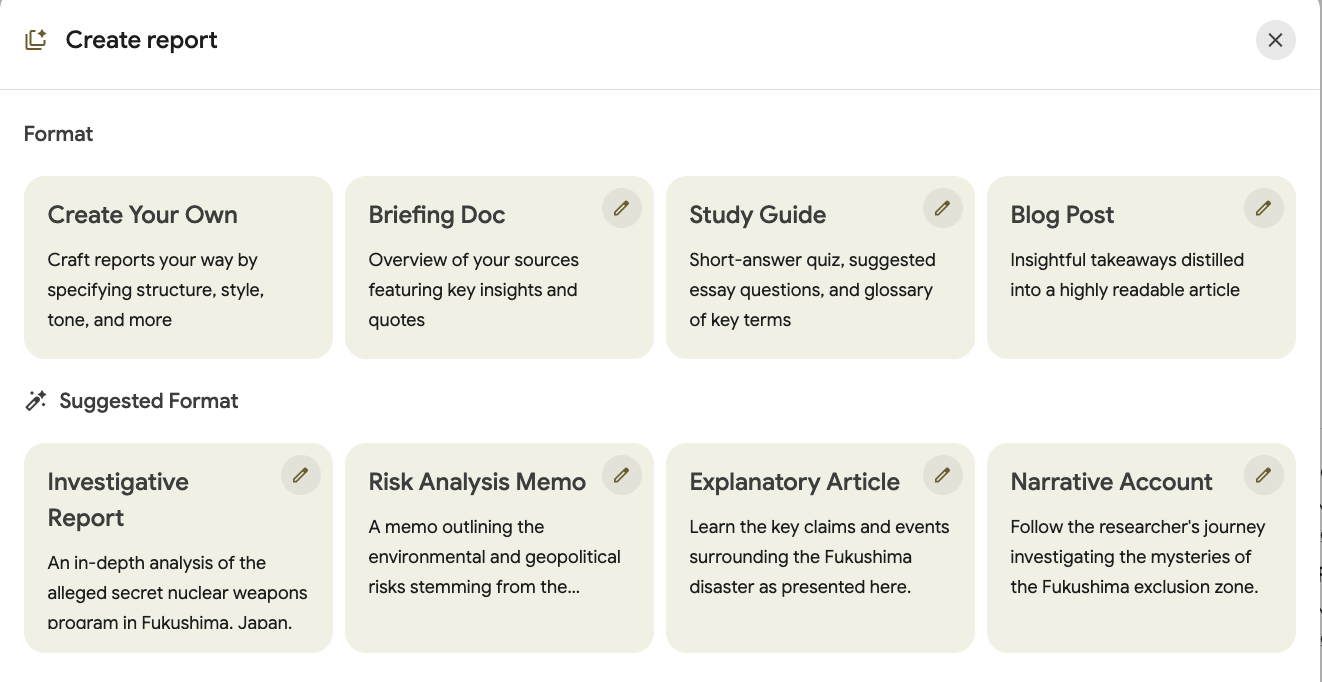 Google Notebook LM additional reports available