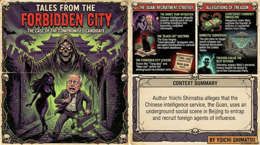 Intro – Part 5 and last in this series on the treasonous Democrat candidates Tim Walz and Kamala Harris ventures in to the forbidden realm of gay and lesbian Beijing, a zone where China’s devious intelligence service has coddled and exploited bent foreigners to serve as informants aka spies and agents of influence for the People’s Republic communist party elite.